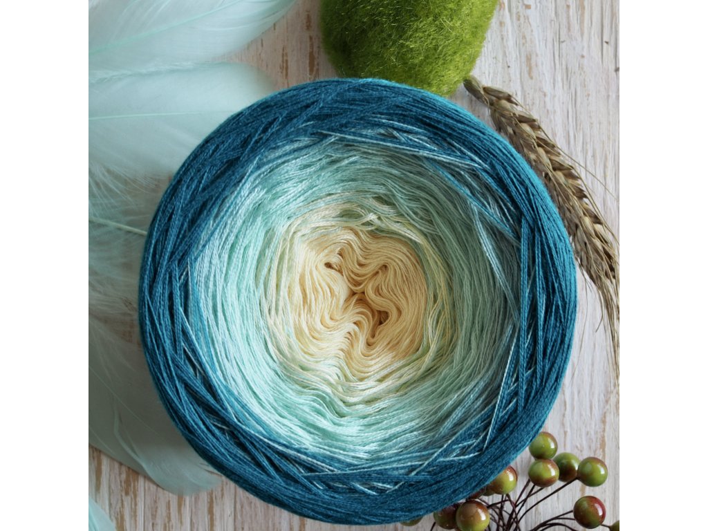 Luxusní, ručně vyrobené duhové klubíčko s jemnými přechody, ze kterého vzniknou lehké a vzdušné modely bez zbytečného sešívání. Délka 1500 m znamená jedno klubko pro velký šátek, šaty, sukni nebo třeba deku do kočárku.