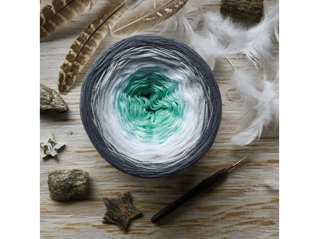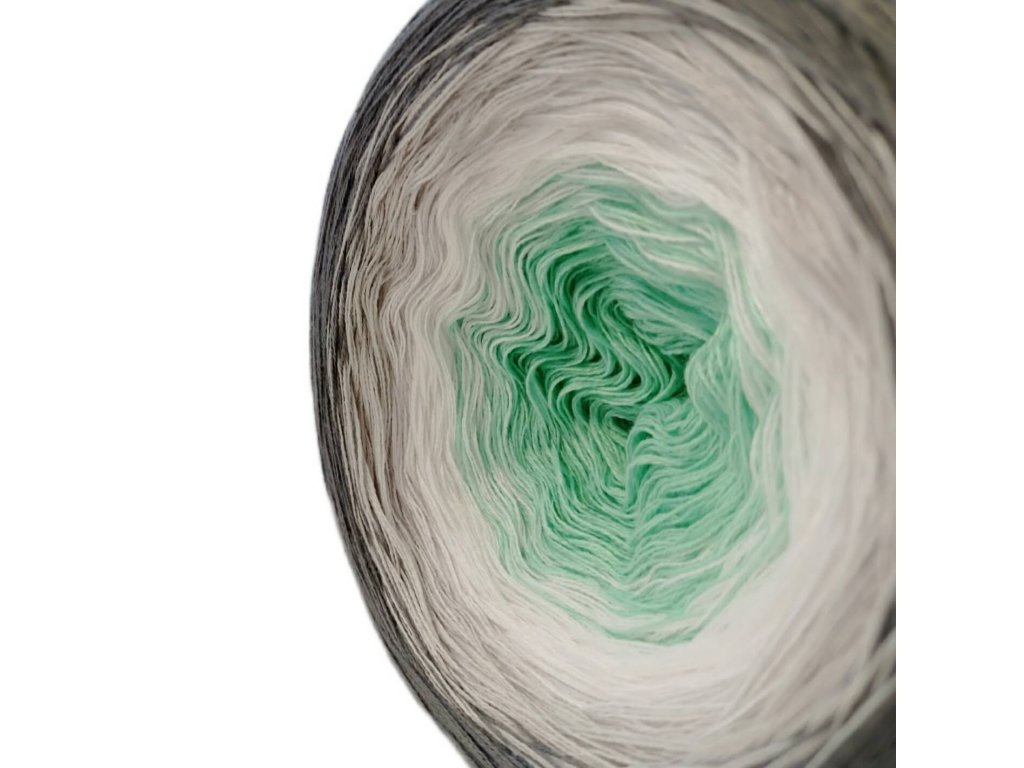 Luxusní, ručně vyrobené duhové klubíčko s jemnými přechody, ze kterého vzniknou lehké a vzdušné modely bez zbytečného sešívání. Délka 1500 m znamená jedno klubko pro velký šátek, šaty, sukni nebo třeba deku do kočárku.