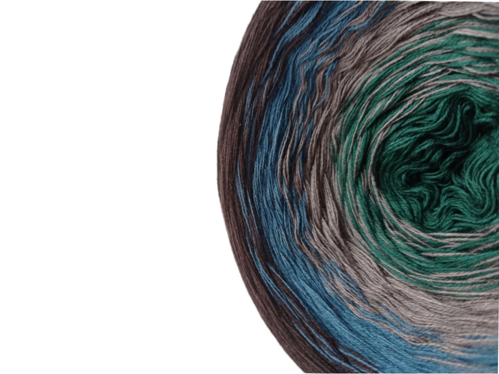Luxusní, ručně vyrobené duhové klubíčko s jemnými přechody, ze kterého vzniknou lehké a vzdušné modely bez zbytečného sešívání. Délka 1500 m znamená jedno klubko pro velký šátek, šaty, sukni nebo třeba deku do kočárku.
