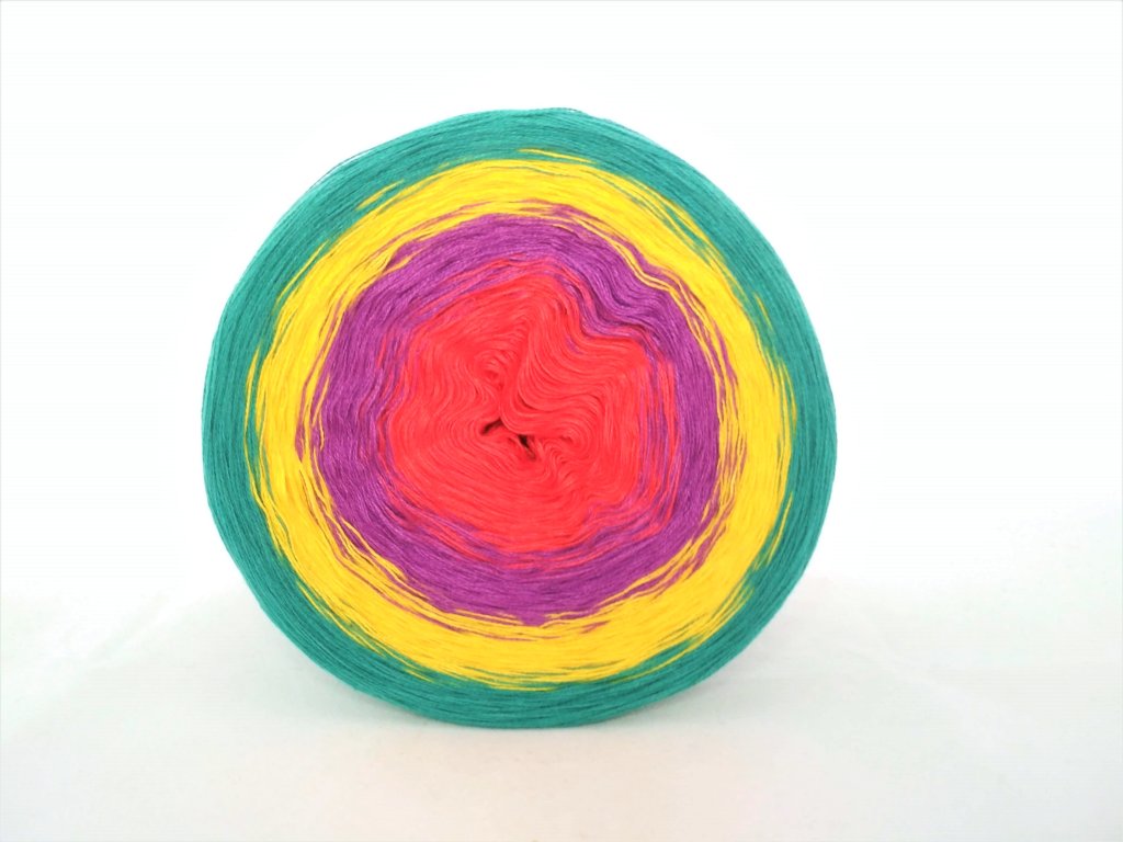 Luxusní, ručně vyrobené duhové klubíčko s jemnými přechody, ze kterého vzniknou lehké a vzdušné modely bez zbytečného sešívání. Délka 1500 m znamená jedno klubko pro velký šátek, šaty, sukni nebo třeba deku do kočárku.
