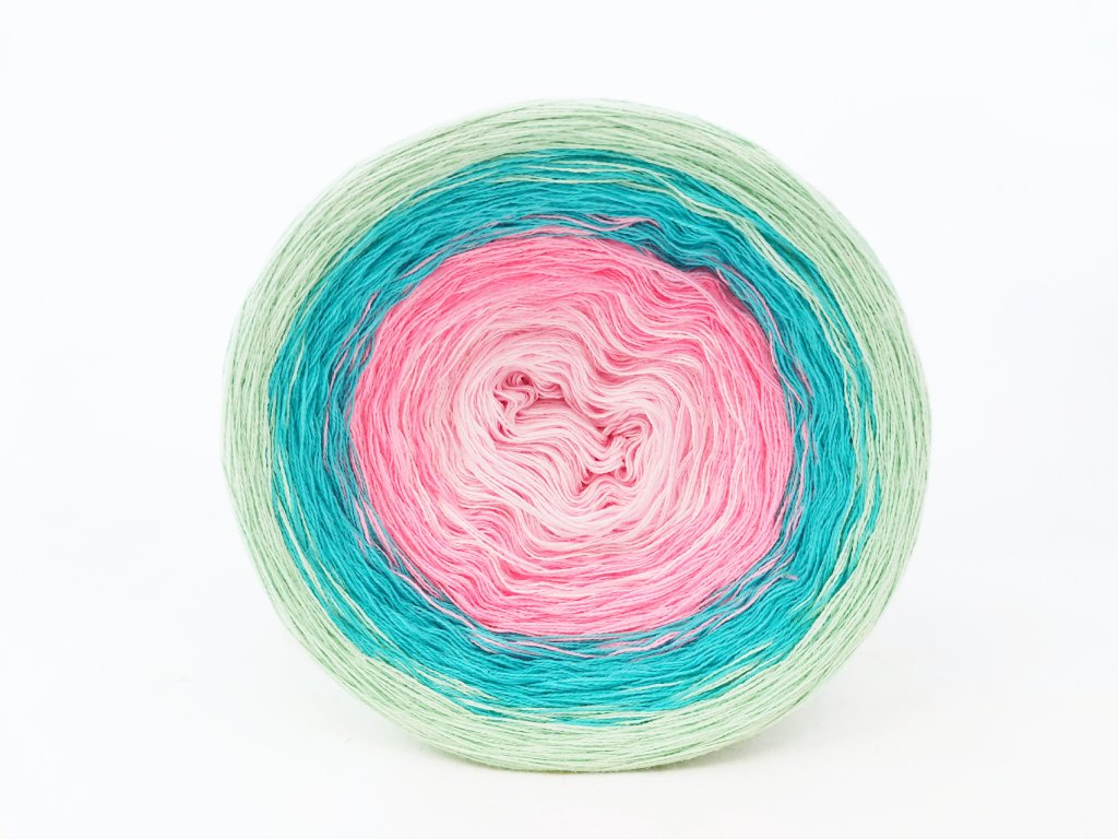 Luxusní, ručně vyrobené duhové klubíčko s jemnými přechody, ze kterého vzniknou lehké a vzdušné modely bez zbytečného sešívání. Délka 1500 m znamená jedno klubko pro velký šátek, šaty, sukni nebo třeba deku do kočárku.