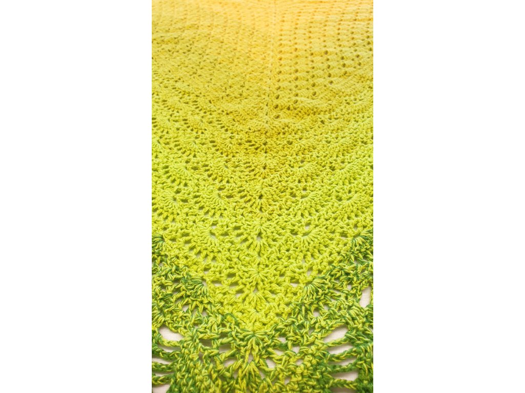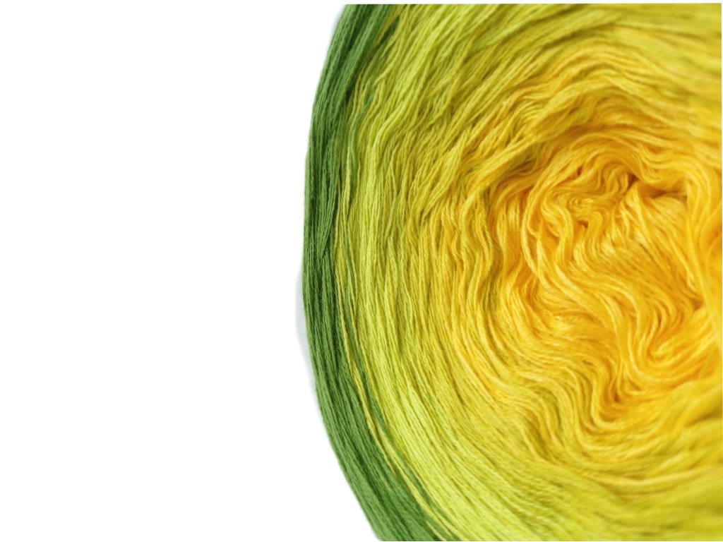 Luxusní, ručně vyrobené duhové klubíčko s jemnými přechody, ze kterého vzniknou lehké a vzdušné modely bez zbytečného sešívání. Délka 1500 m znamená jedno klubko pro velký šátek, šaty, sukni nebo třeba deku do kočárku.
