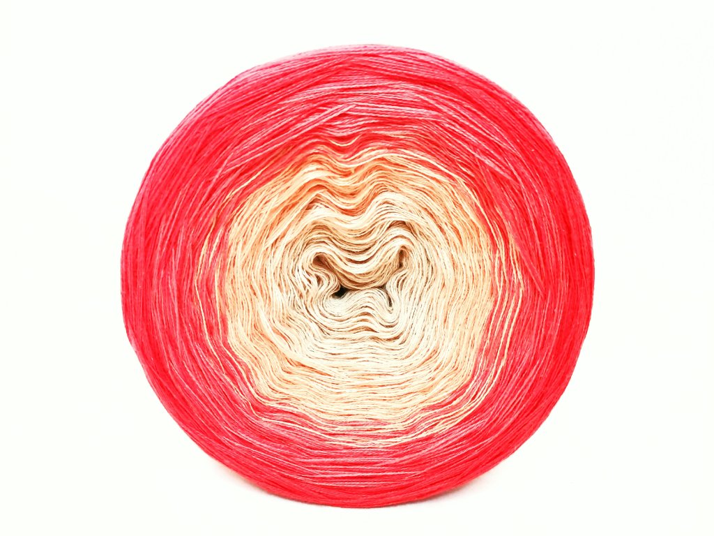 Luxusní, ručně vyrobené duhové klubíčko s jemnými přechody, ze kterého vzniknou lehké a vzdušné modely bez zbytečného sešívání. Délka 1500 m znamená jedno klubko pro velký šátek, šaty, sukni nebo třeba deku do kočárku.