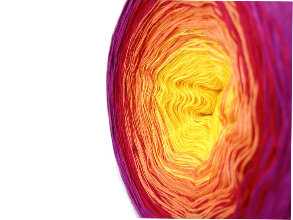 Luxusní, ručně vyrobené duhové klubíčko s jemnými přechody, ze kterého vzniknou lehké a vzdušné modely bez zbytečného sešívání. Délka 1500 m znamená jedno klubko pro velký šátek, šaty, sukni nebo třeba deku do kočárku.