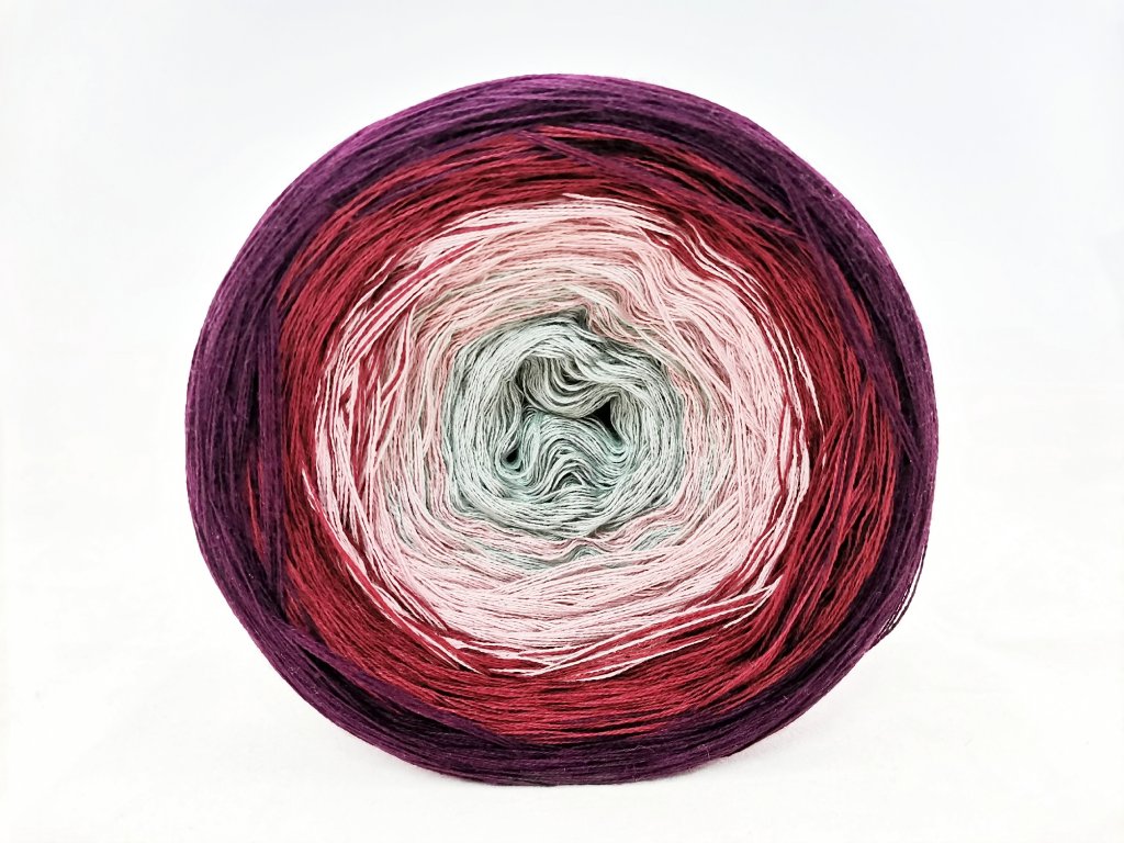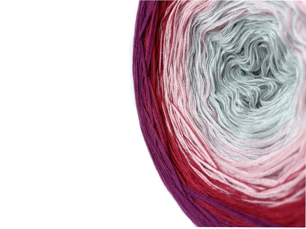 Luxusní, ručně vyrobené duhové klubíčko s jemnými přechody, ze kterého vzniknou lehké a vzdušné modely bez zbytečného sešívání. Délka 1500 m znamená jedno klubko pro velký šátek, šaty, sukni nebo třeba deku do kočárku.