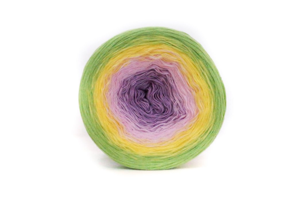 Luxusní, ručně vyrobené duhové klubíčko s jemnými přechody, ze kterého vzniknou lehké a vzdušné modely bez zbytečného sešívání. Délka 1500 m znamená jedno klubko pro velký šátek, šaty, sukni nebo třeba deku do kočárku.