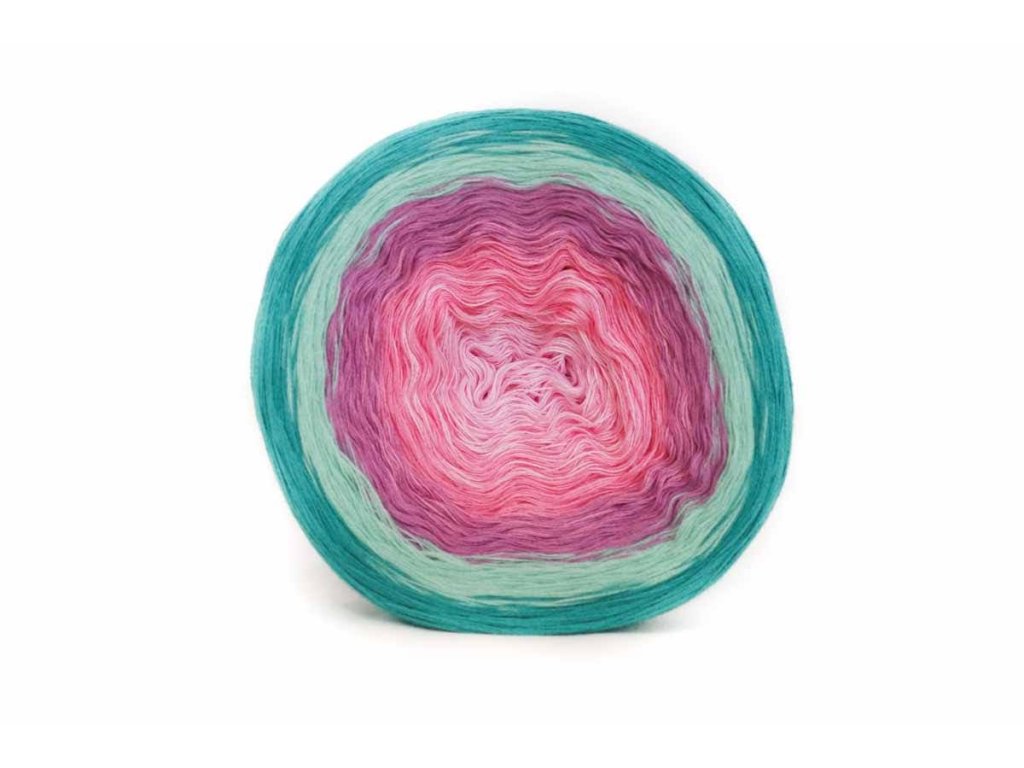 Luxusní, ručně vyrobené duhové klubíčko s jemnými přechody, ze kterého vzniknou lehké a vzdušné modely bez zbytečného sešívání. Délka 1500 m znamená jedno klubko pro velký šátek, šaty, sukni nebo třeba deku do kočárku.