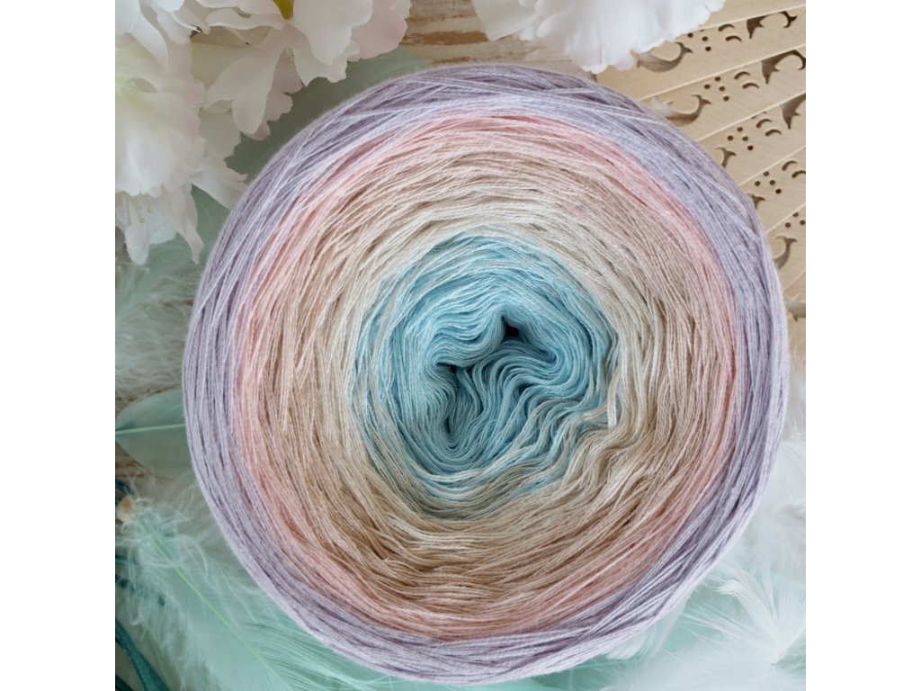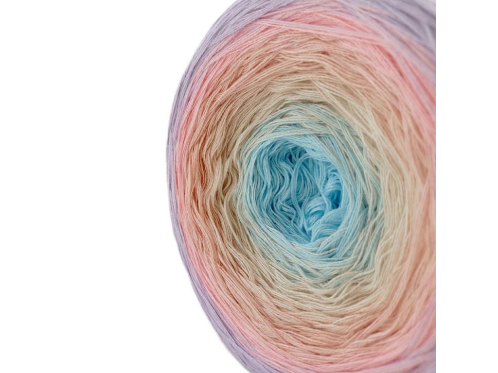 Luxusní, ručně vyrobené duhové klubíčko s jemnými přechody, ze kterého vzniknou lehké a vzdušné modely bez zbytečného sešívání. Délka 1000 m znamená jedno klubko pro šálu, tílko, nebo sukni pro menší holky.