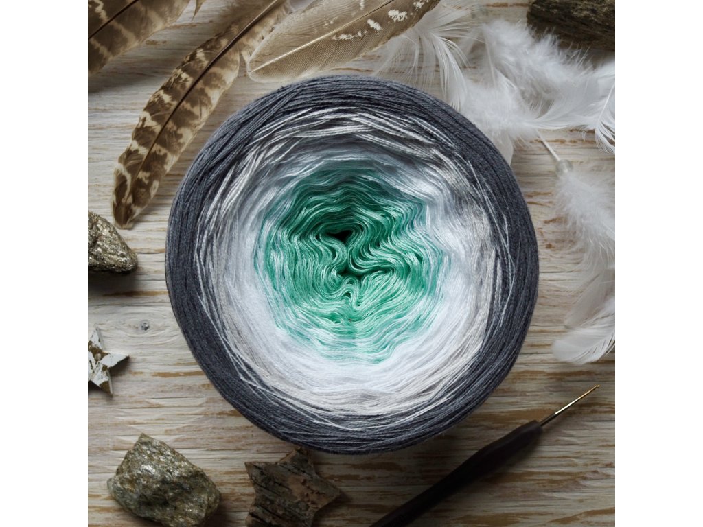 Luxusní, ručně vyrobené duhové klubíčko s jemnými přechody, ze kterého vzniknou lehké a vzdušné modely bez zbytečného sešívání. Délka 500 m znamená jedno klubko pro šálu, tílko, nebo sukni pro menší holky.