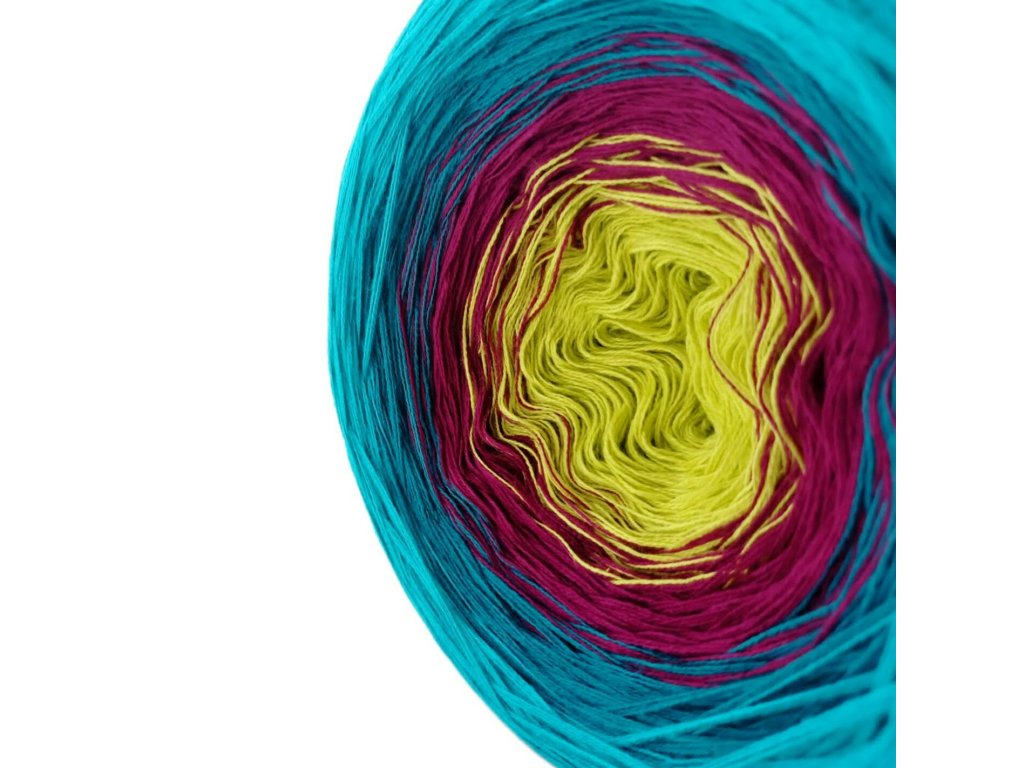 Luxusní, ručně vyrobené duhové klubíčko s jemnými přechody, ze kterého vzniknou lehké a vzdušné modely bez zbytečného sešívání. Délka 500 m znamená jedno klubko pro šálu, tílko, nebo sukni pro menší holky.