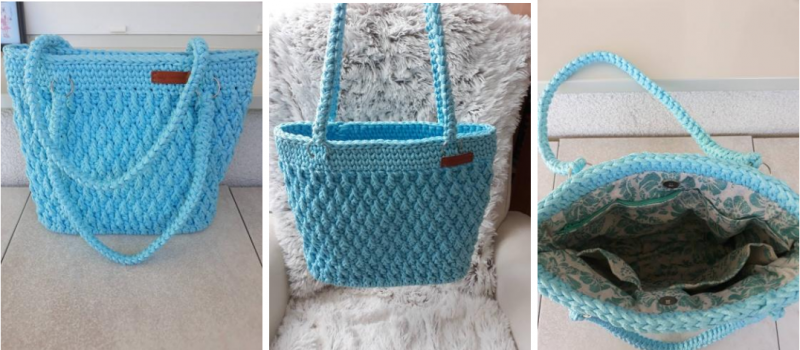 Vyrobit si z ní můžete třeba kabelku, košíček, prostíraní, nebo spoustu jiných doplňků. Každý výrobek bude díky vzhledu příze vypadat luxusně. Na tuto kabelku (viz. foto v galerii níže) byla spotřeba 1,5 cívky, Kabelka má kožené dno 30x10 cm, výška 28 cm.